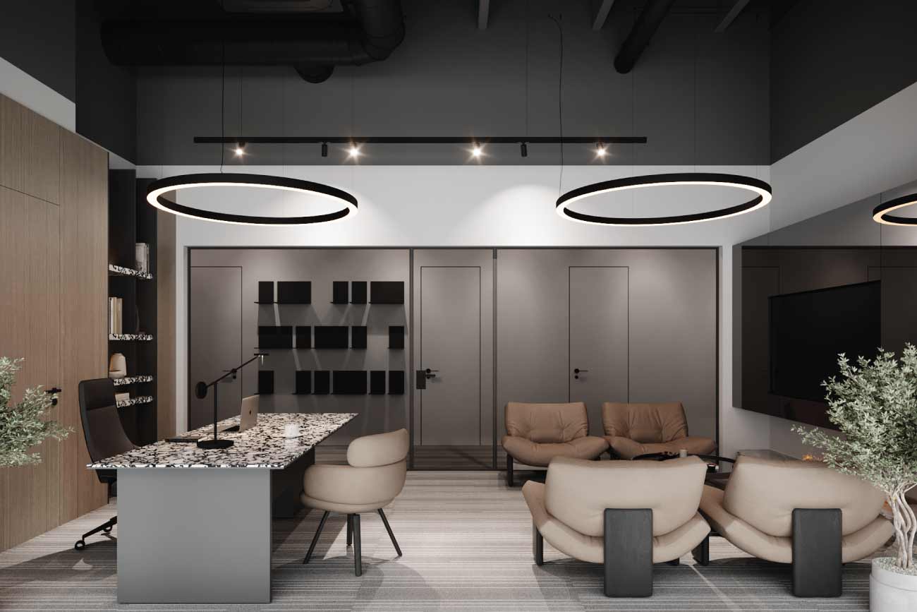 2E Office is a 360 m² workspace designed to balance functionality with modern style. Bright, open areas and clean lines create an efficient environment that supports productivity while maintaining a professional and elegant atmosphere.