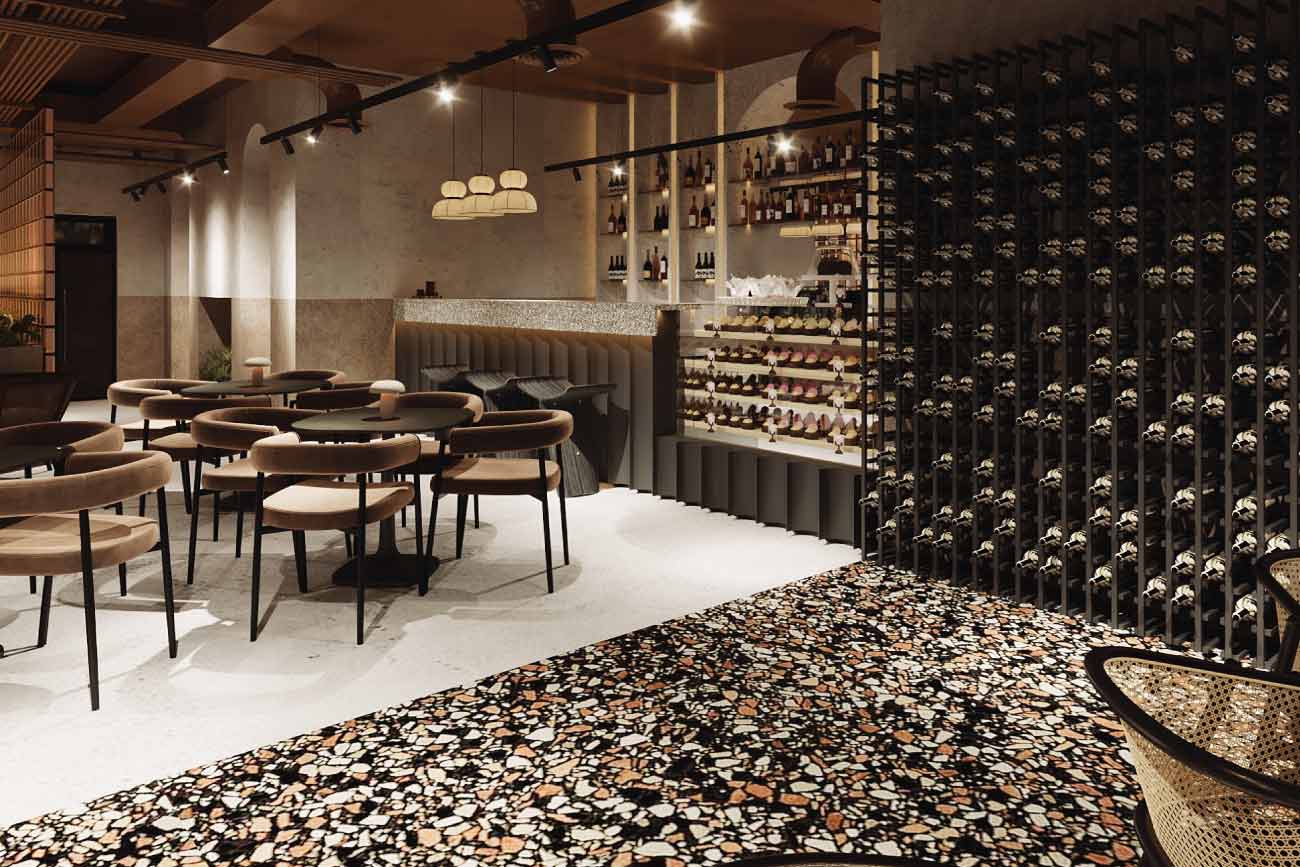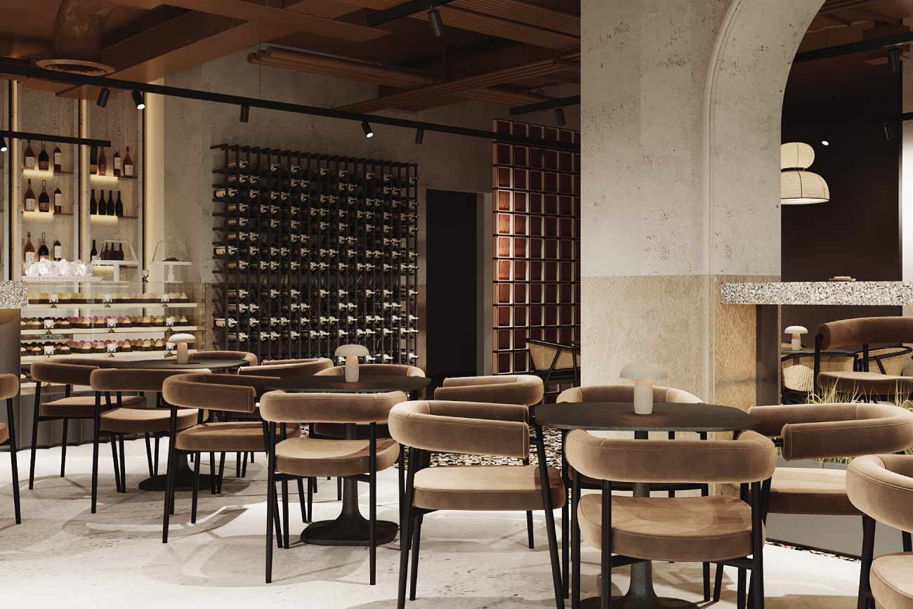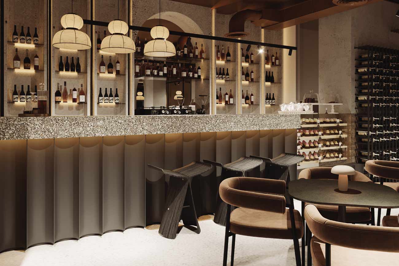 Queen’s Coffee Bar is a 350 m² space designed with a modern and inviting atmosphere. Blending warm interiors, open seating, and refined details, it offers the perfect setting to enjoy coffee in style and comfort.